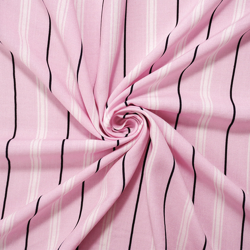 Pink-White-Black Rayon Stripe Printed Challis Woven Fabric