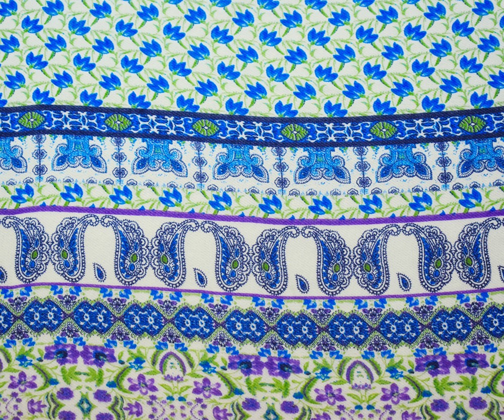 Blue-Purple-Multi Poly Border Floral Printed Chiffon Woven Fabric