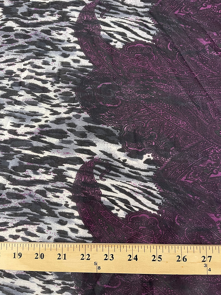 Burgundy Paisley Border Print Chiffon Fabric