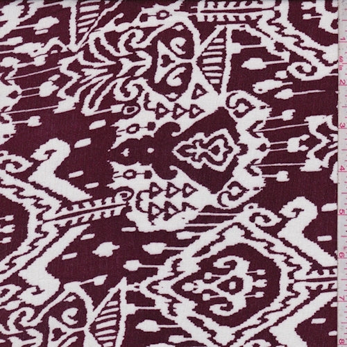Burgundy/White Baroque Crinkled Gauze Fabric