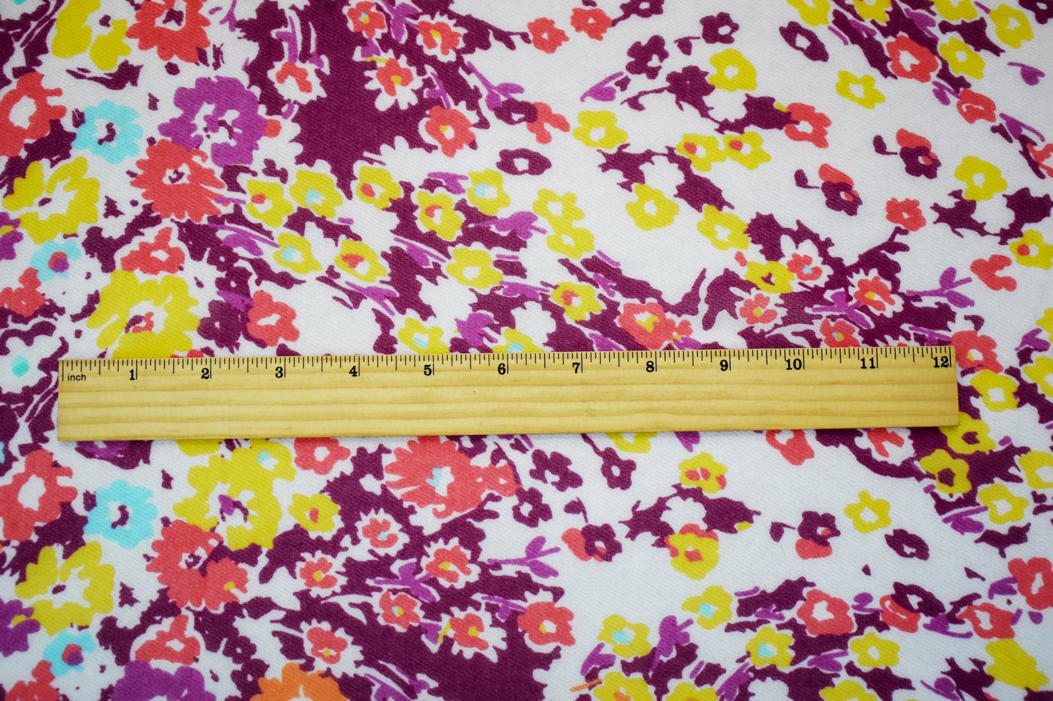 Deep Purple-Orange-Multi Poly Floral Printed Chiffon Woven Fabric
