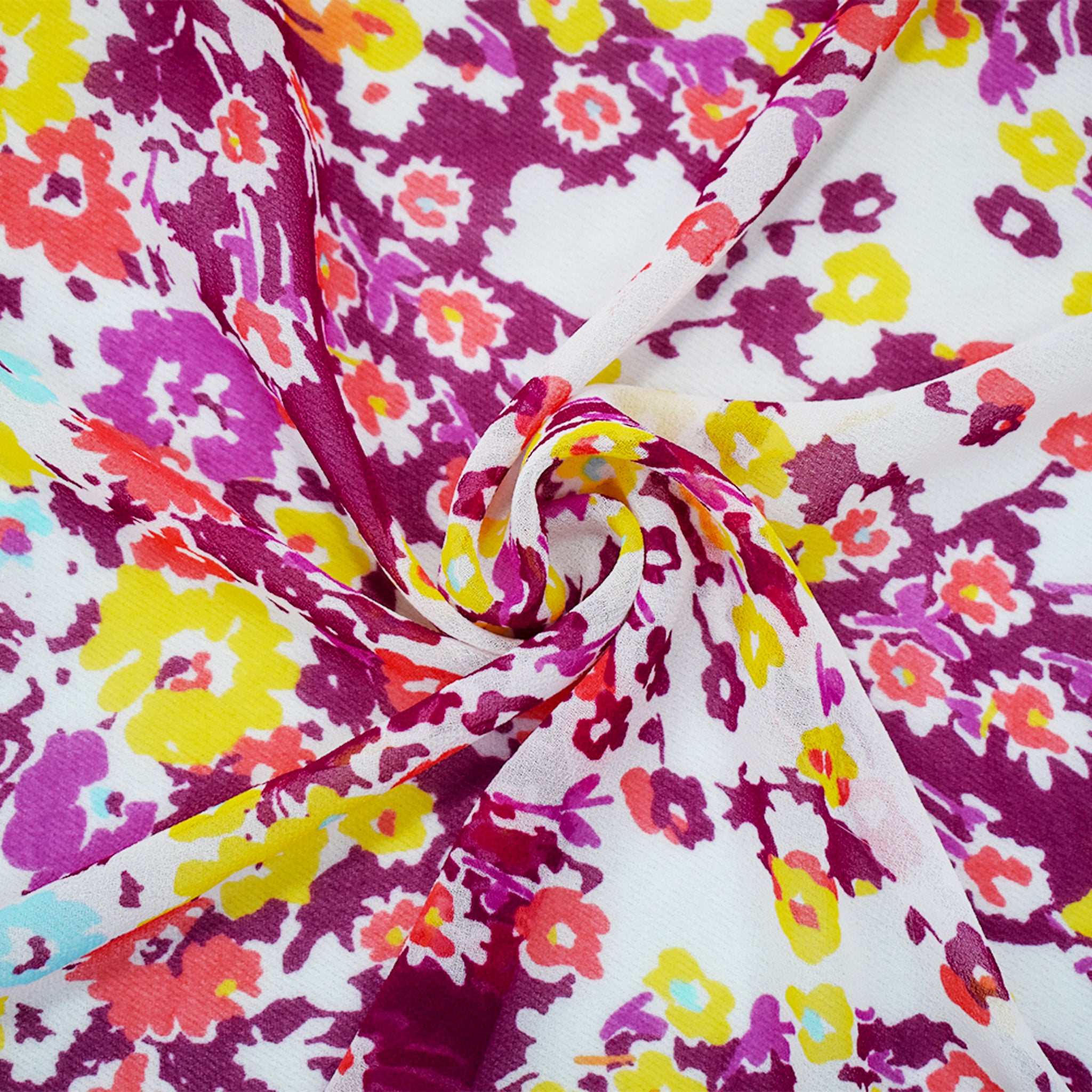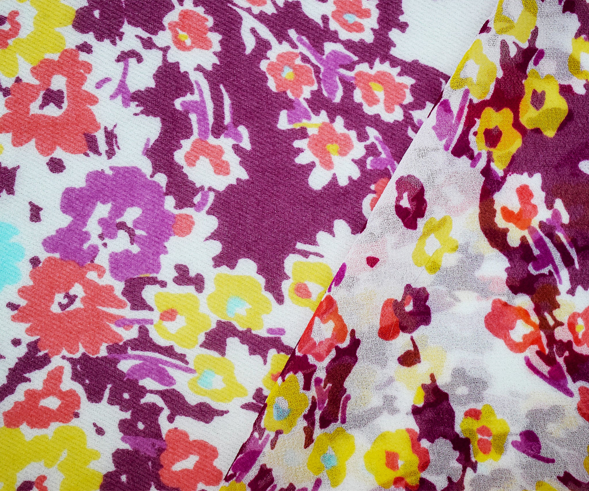 -100% Polyester chiffon woven fabric printed with a fun floral pattern