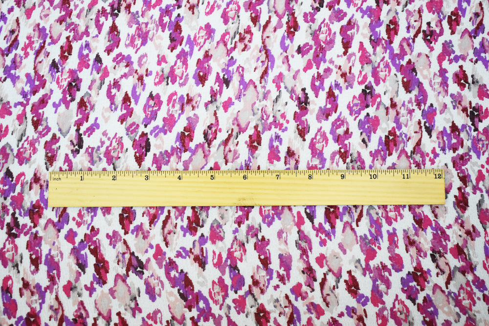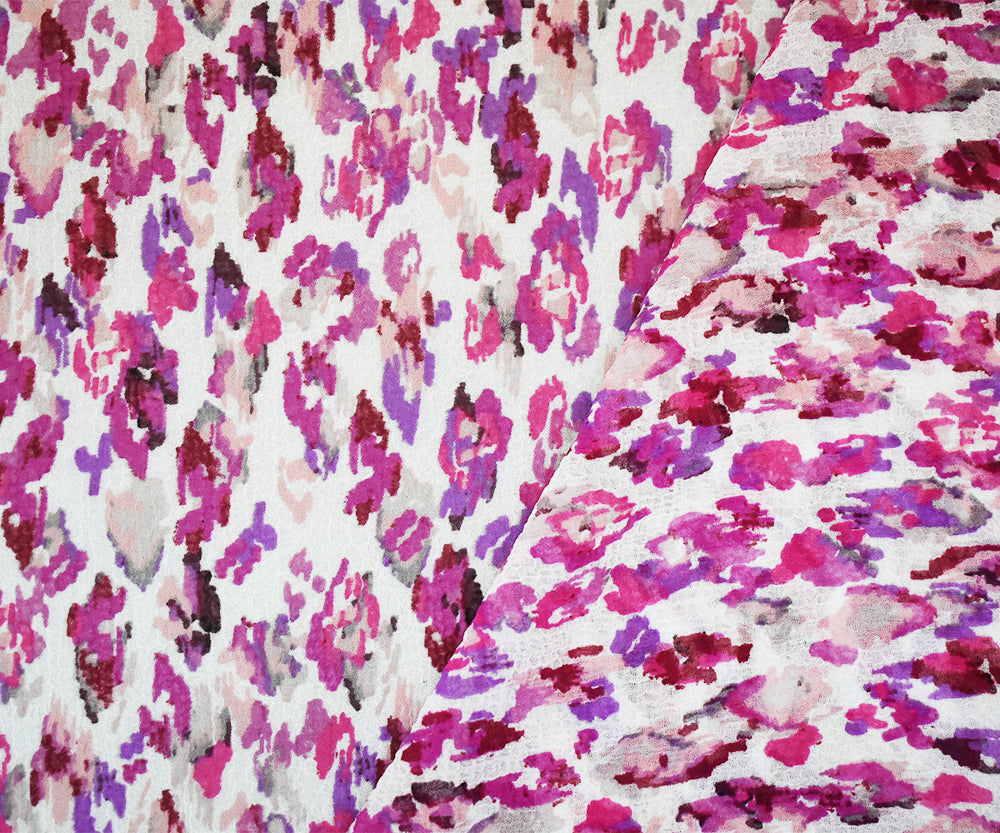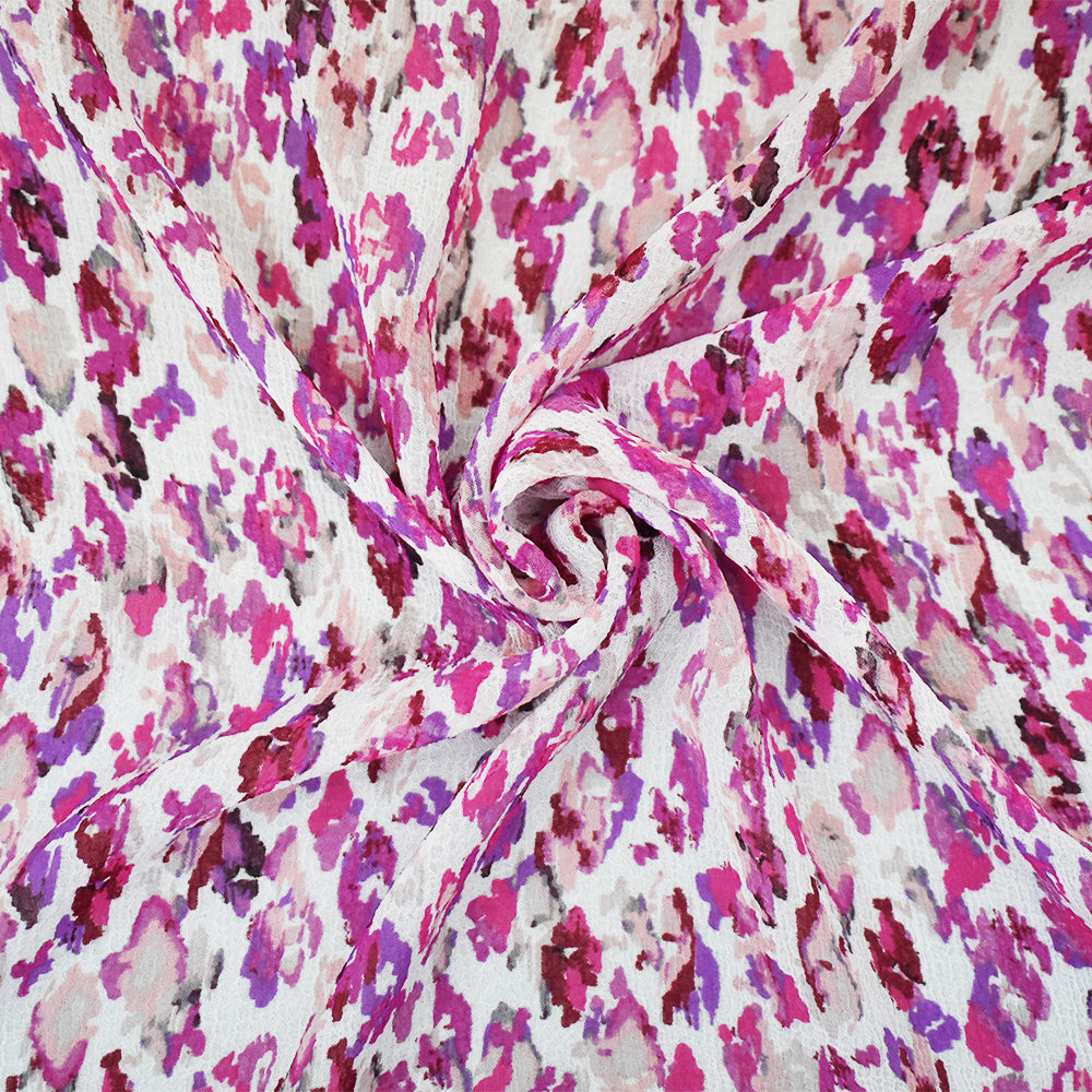 Fuchsia-Multi Abstract Water Color Spots Print Pebble Crepe Chiffon Fabric