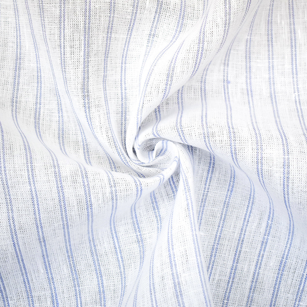 -150 gsm Spence Bryson Katesbridge 100% Linen yarn dyed striped slub woven with a soft sanforised finish. Line if needed. Made in Ireland.
