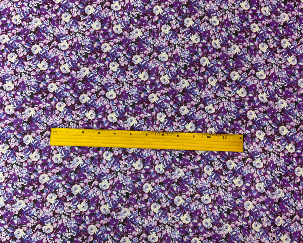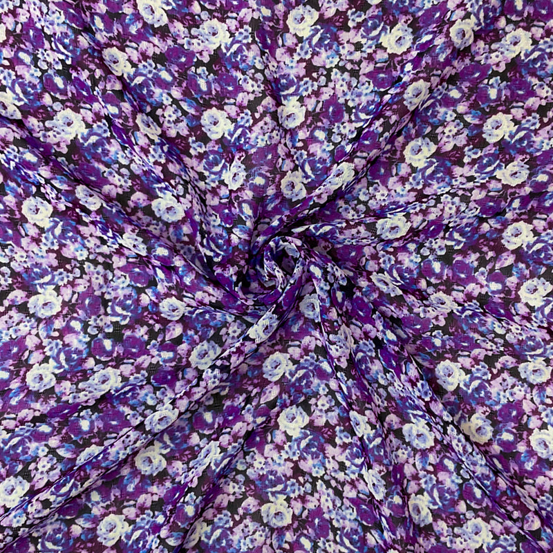 Purple-Black-Multi Poly Floral Printed Dobby Chiffon Woven Fabric