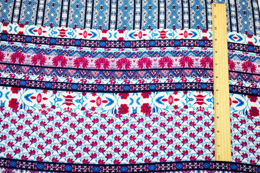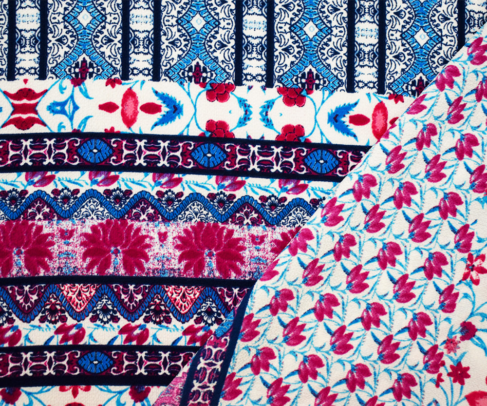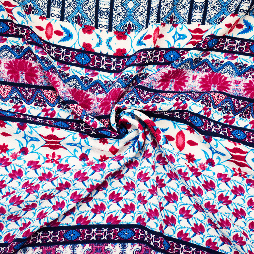 Purple-Fuchsia-Multi Poly Boho Multi Pattern Printed Pebble Crepe Fabric