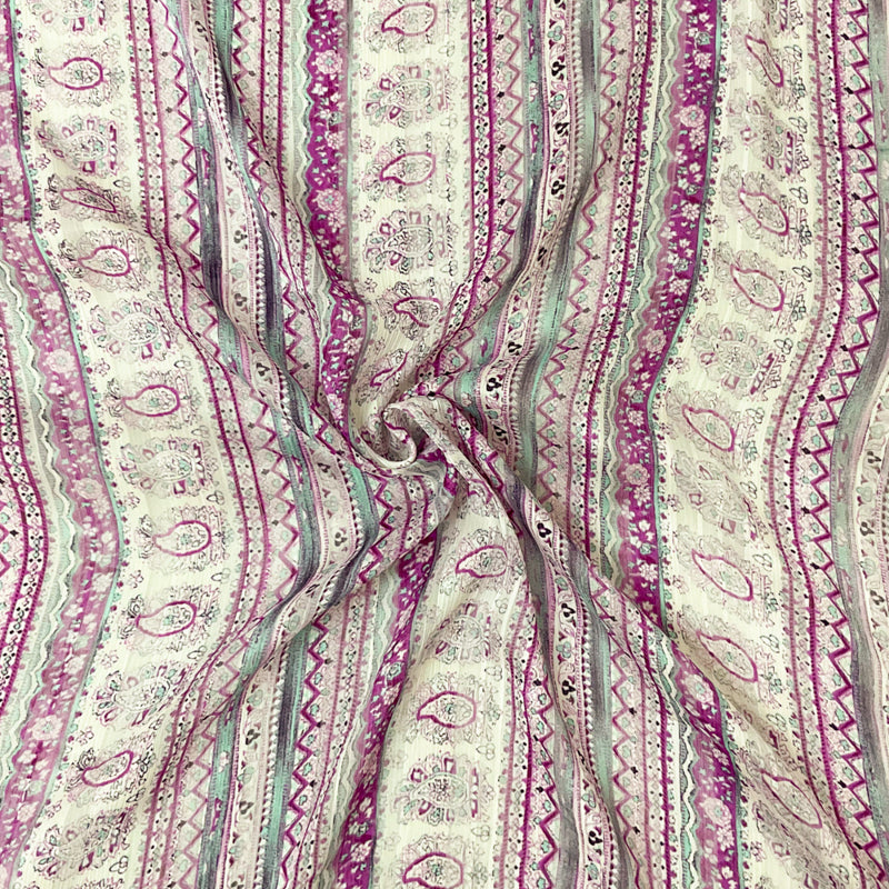Purple-Multi Paisley Printed Satin Stripe Chiffon Woven Fabric