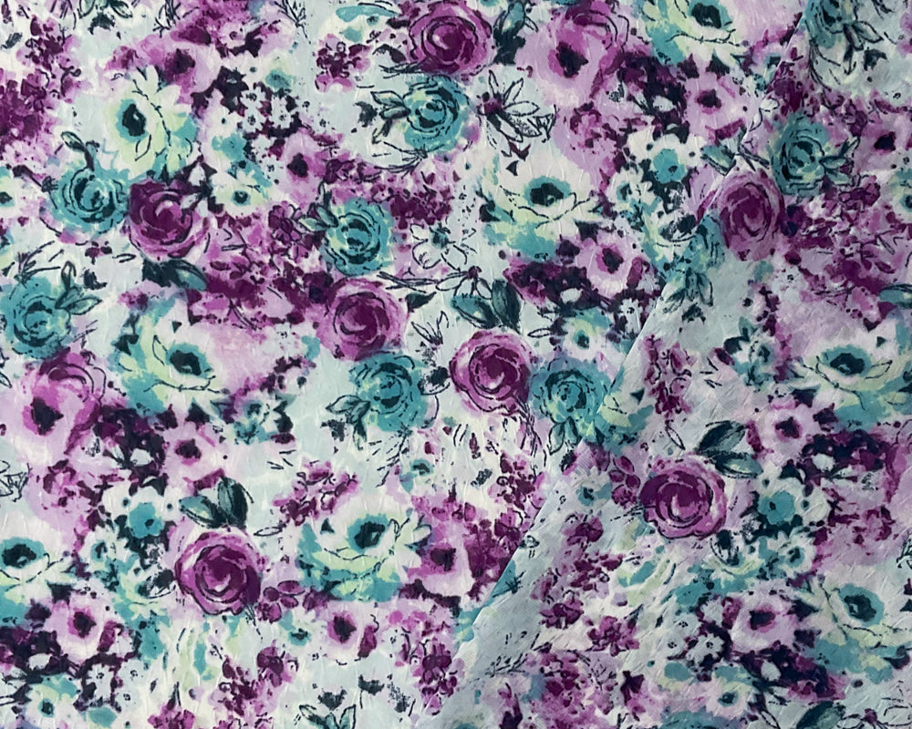 Purple-Teal-Multi Poly Floral Print Ogee Dobby Chiffon Woven Fabric