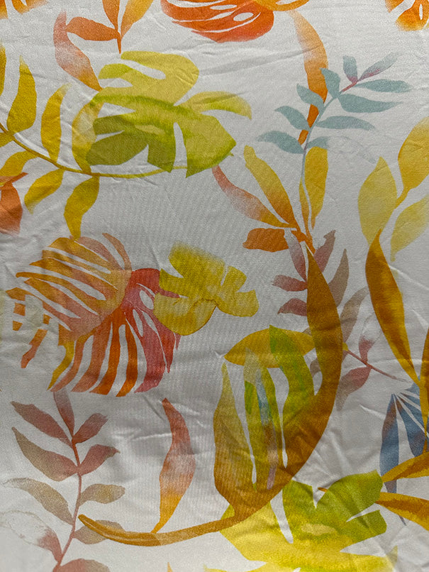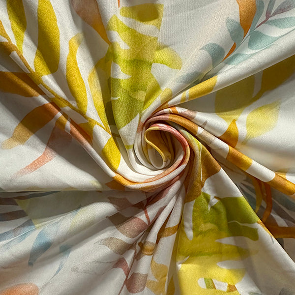 White Multi Palm Leaf Print ITY Jersey Knit Fabric