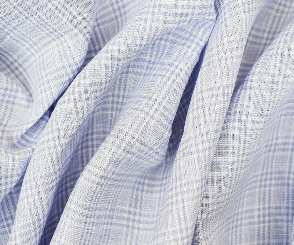 -142 gsm 100% Irish linen Spence Bryson Quintin yarn dyed plaid woven fabric with a ultrasanforised finish. Line if needed. Made in Ireland.