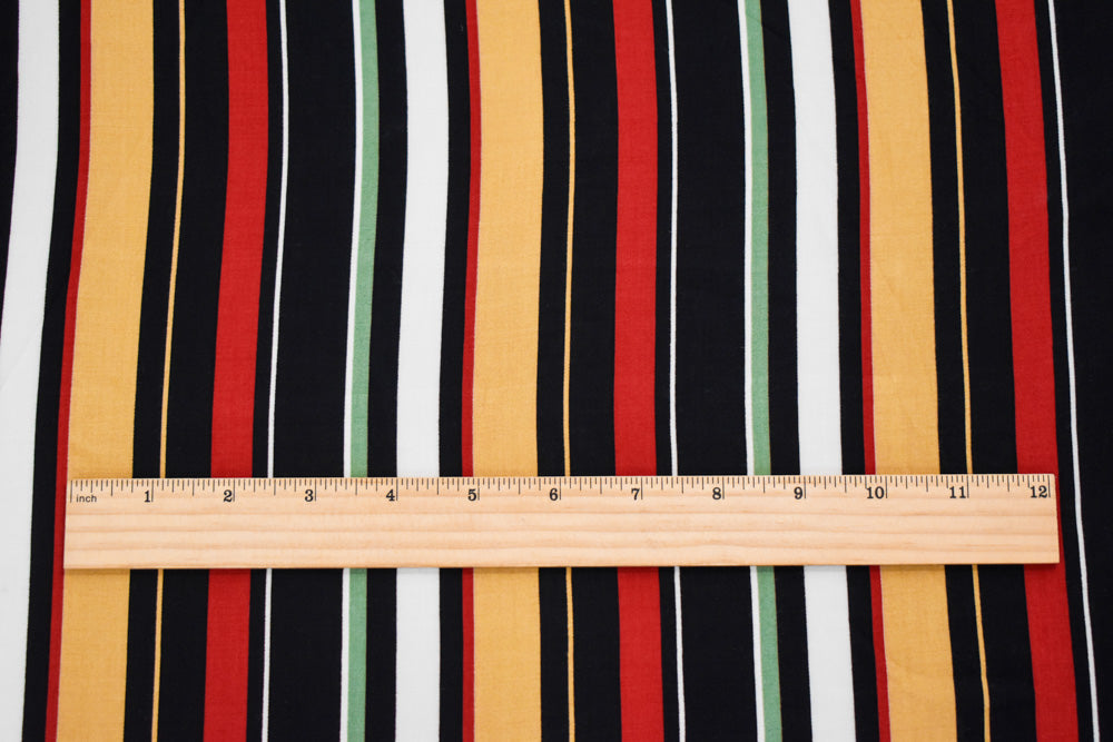 Black-Red-Multi Rayon Stripe Printed Challis Woven Fabric