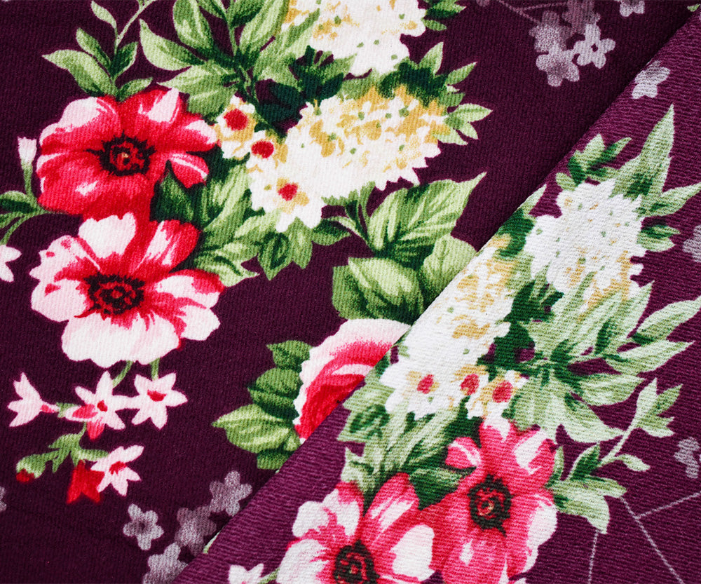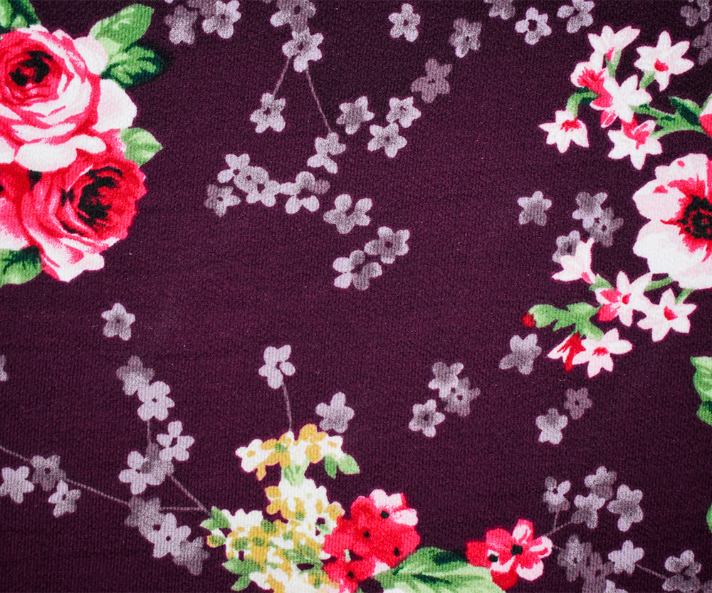 Deep Burgundy-Multi Poly Floral Printed Pebble Crepe Woven Fabric