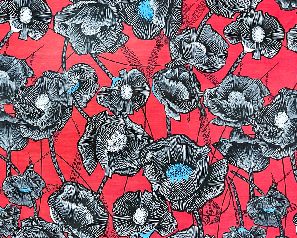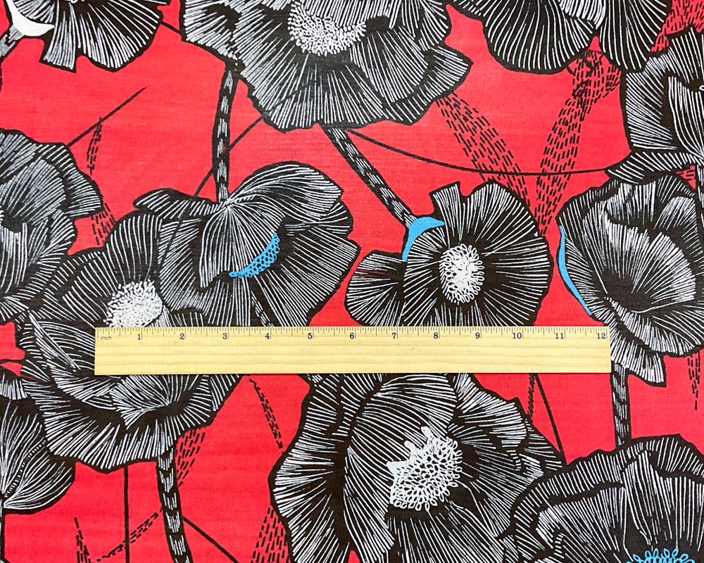Red-Black-Multi Poly Floral Printed Chiffon Woven Fabric