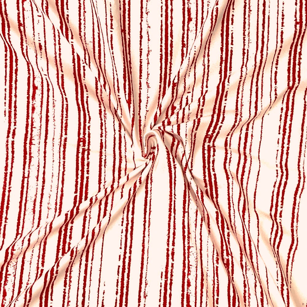 -Red-Light Pink Poly Spandex Stretch Artsy Vertical Stripe Print Double Brush Jersey Knit Fabric