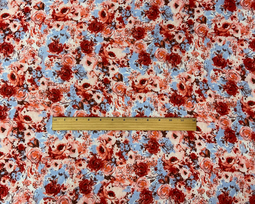 Red-Multi Poly Floral Printed Ogee Dobby Chiffon Woven Fabric