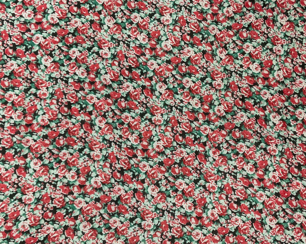 Red-Multi Poly Stripe Floral Border Printed Dobby Chiffon Woven Fabric