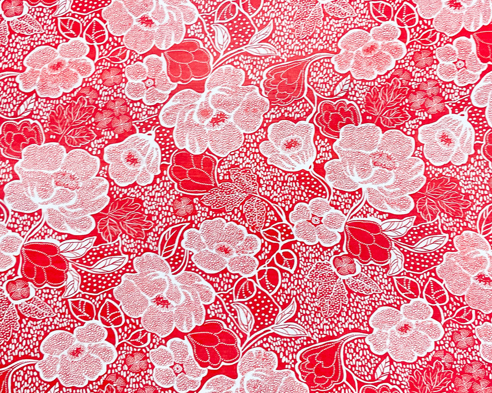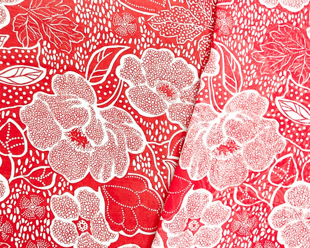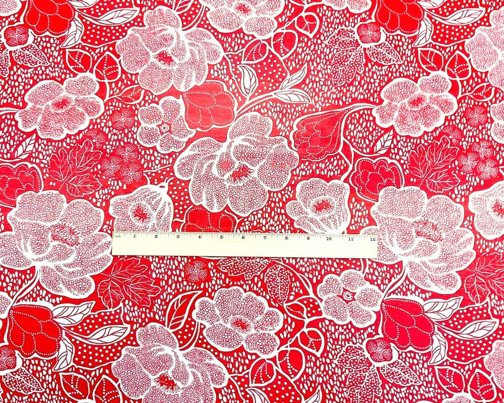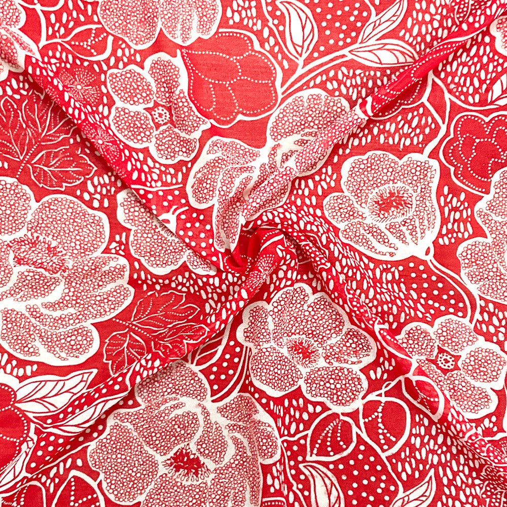 -Red-White Poly Floral Printed Chiffon Woven Fabric