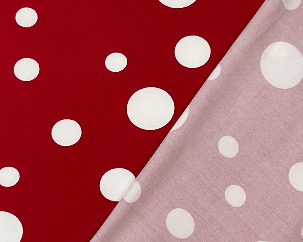 Red-White Poly Spandex Stretch Dot Print DB Jersey Knit Fabric