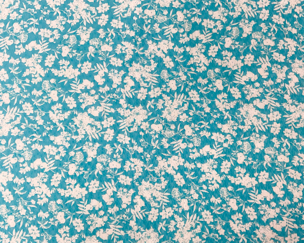 Turquoise-Ivory Floral Printed Ogee Dobby Chiffon Woven Fabric