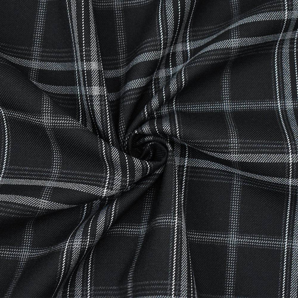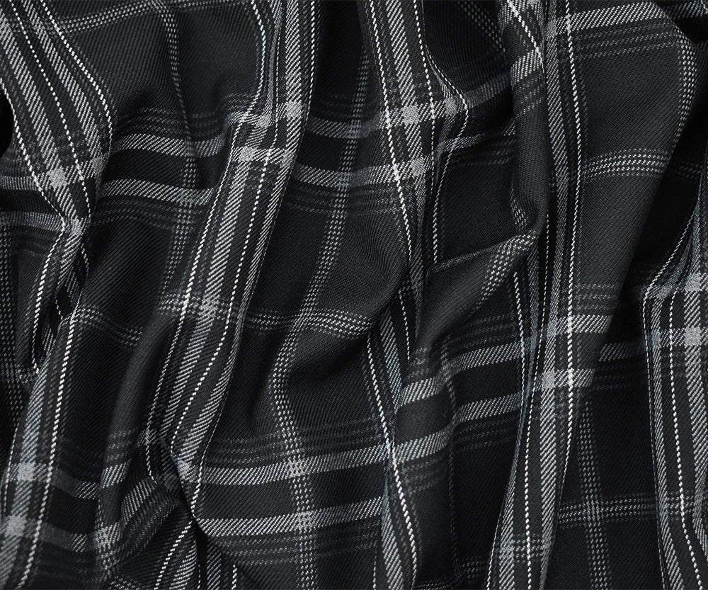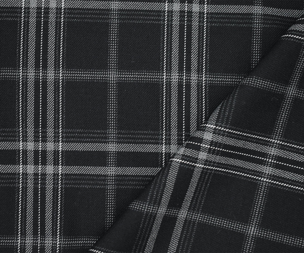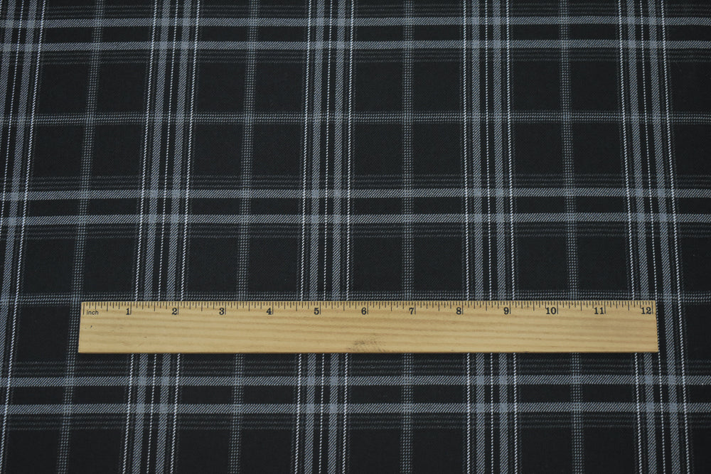 Black-White-Gray Wool-Poly Plaid Twill Suiting WovenFabric