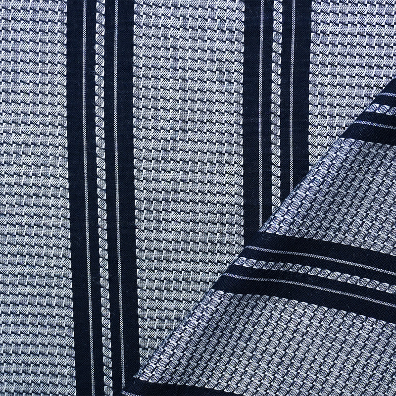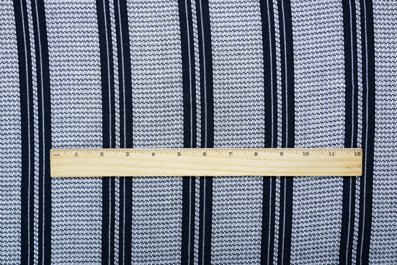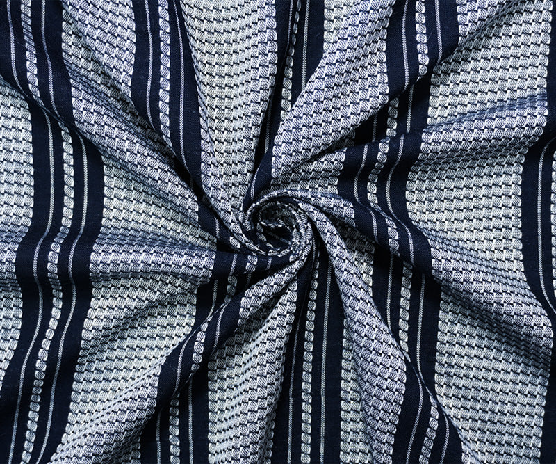 Deep Blue-White Rayon Cotton Stripe Dobby Woven Fabric