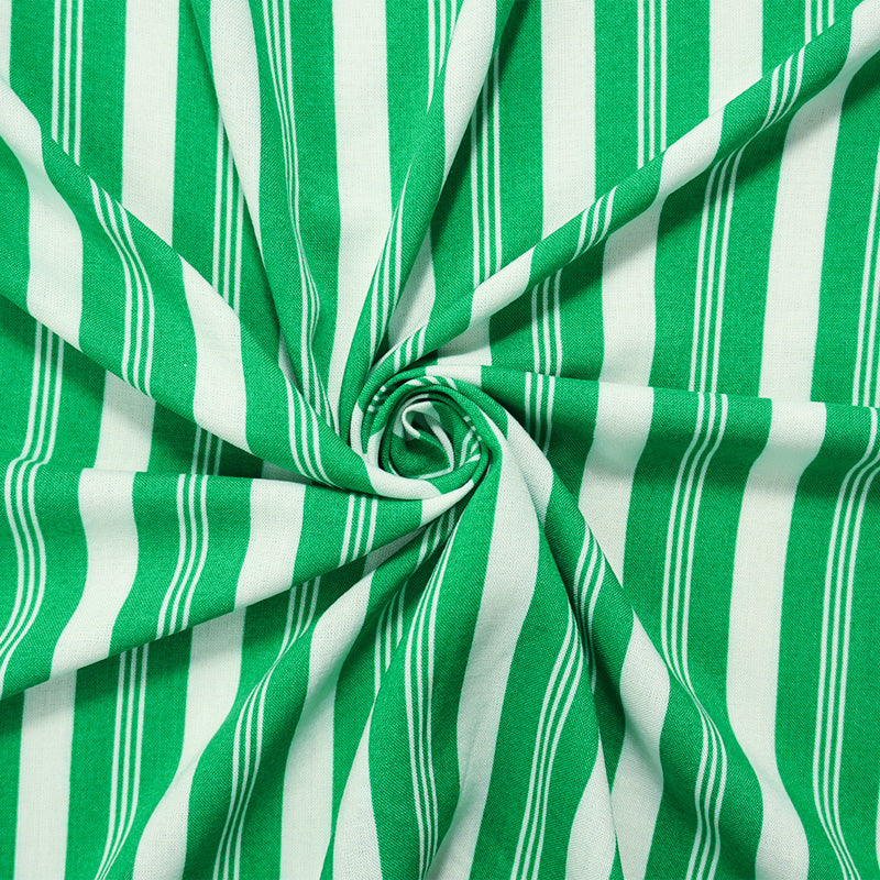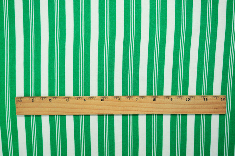 Green-White Rayon Stripe Printed Challis Woven Fabric