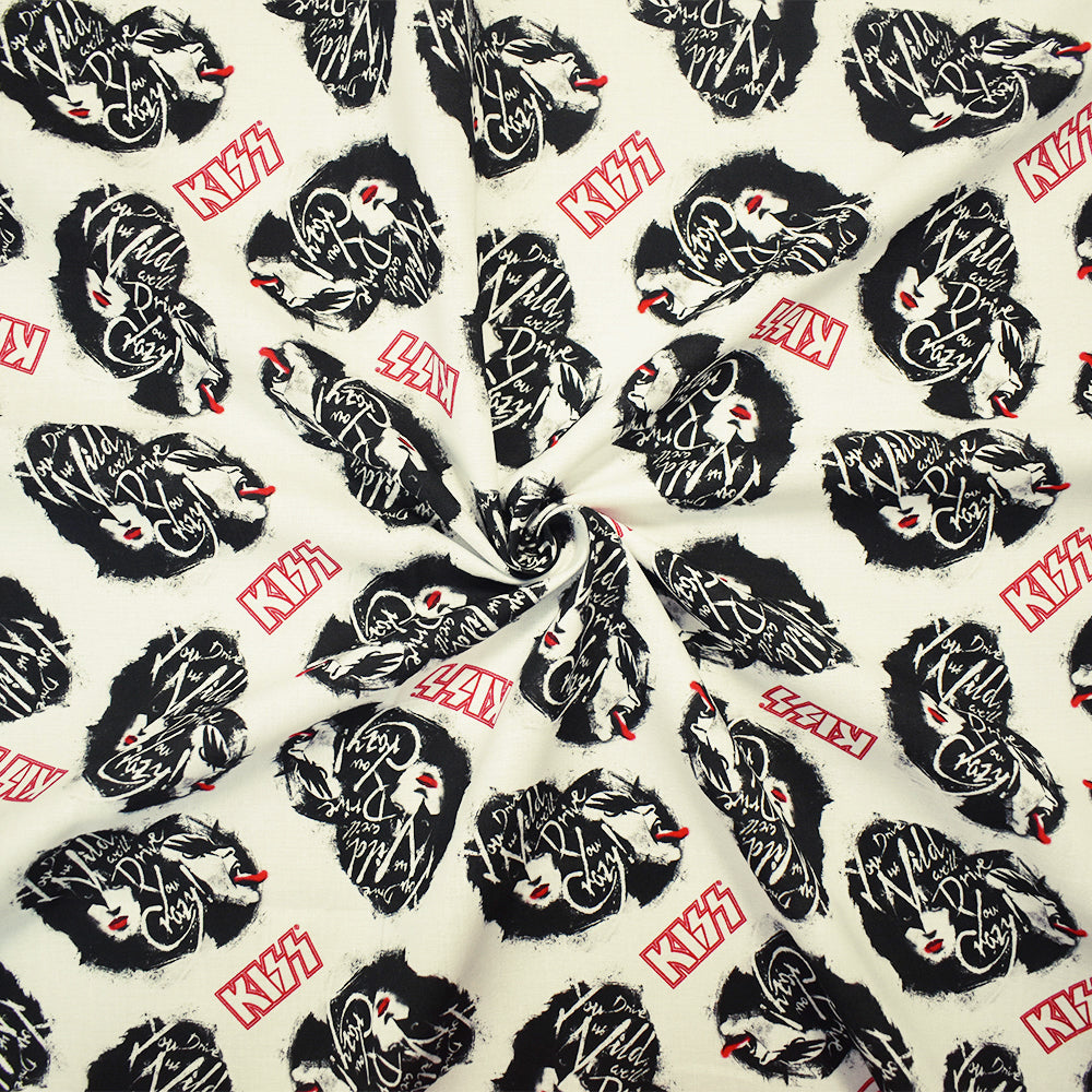 -White-Black-Multi Kiss Drive You Printed Cotton Quilting Woven Fabric