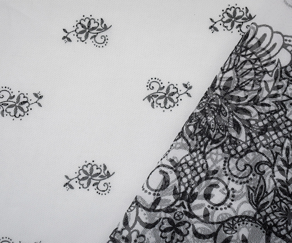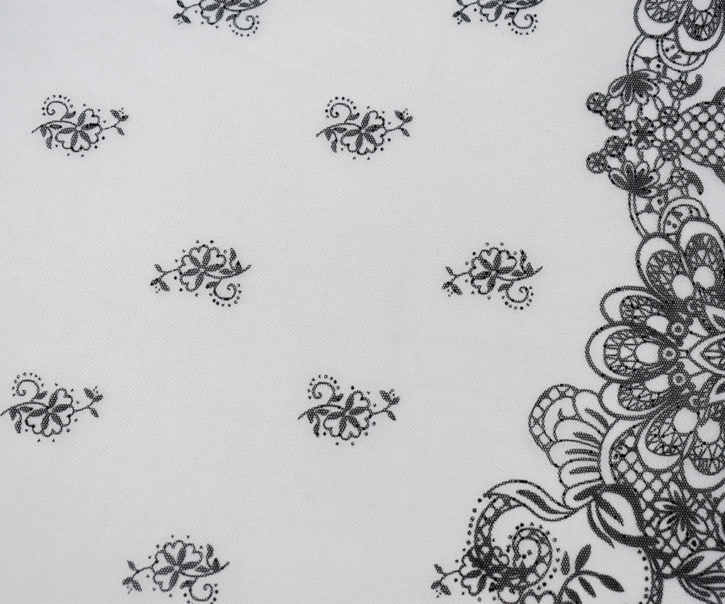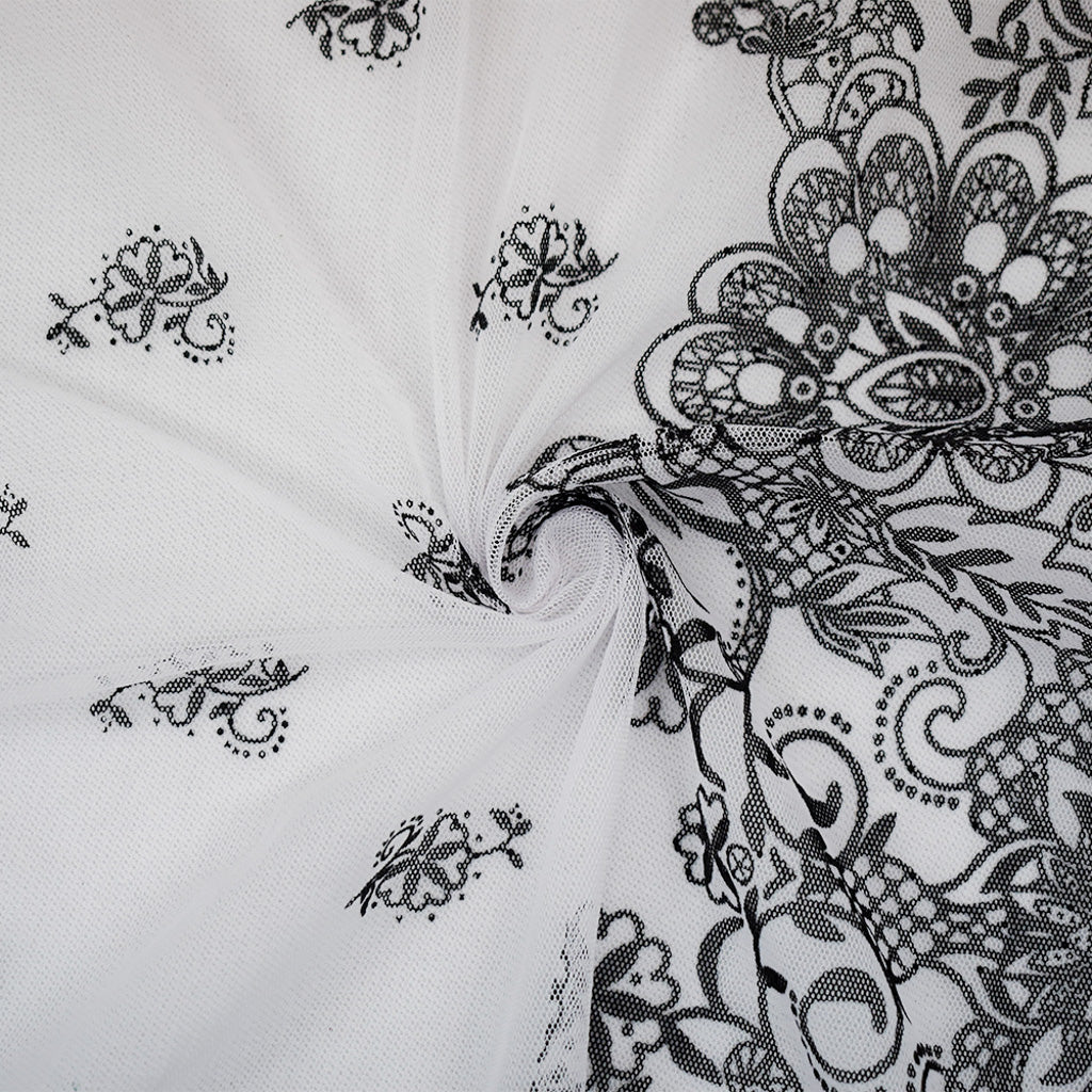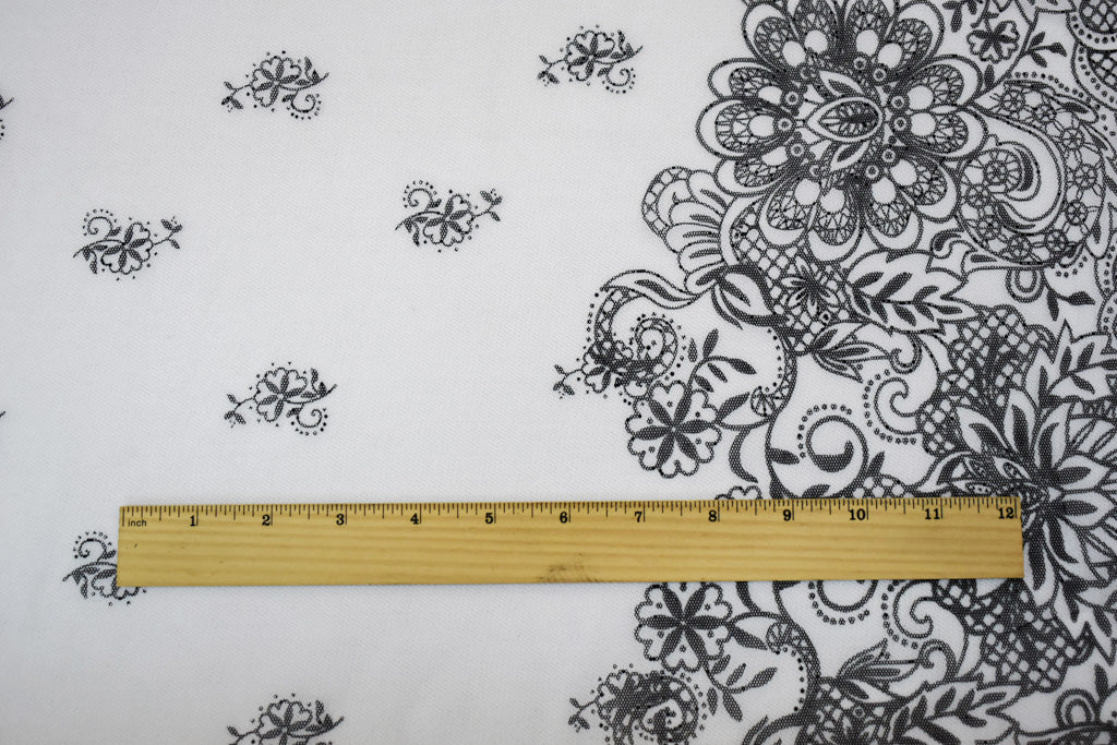 White-Black Nylon Floral Border Printed Mesh Tulle Knit Fabric