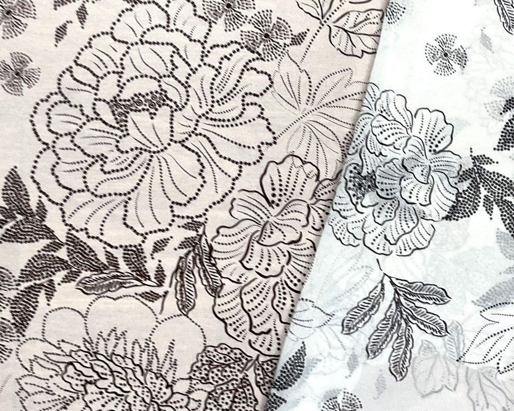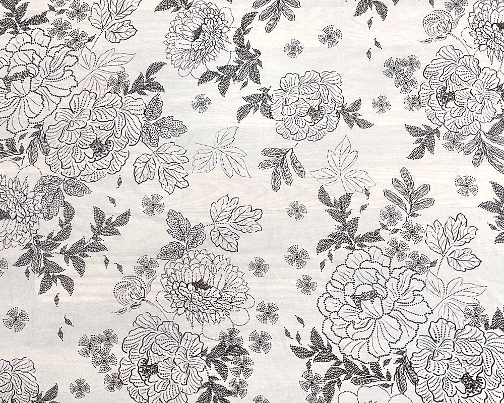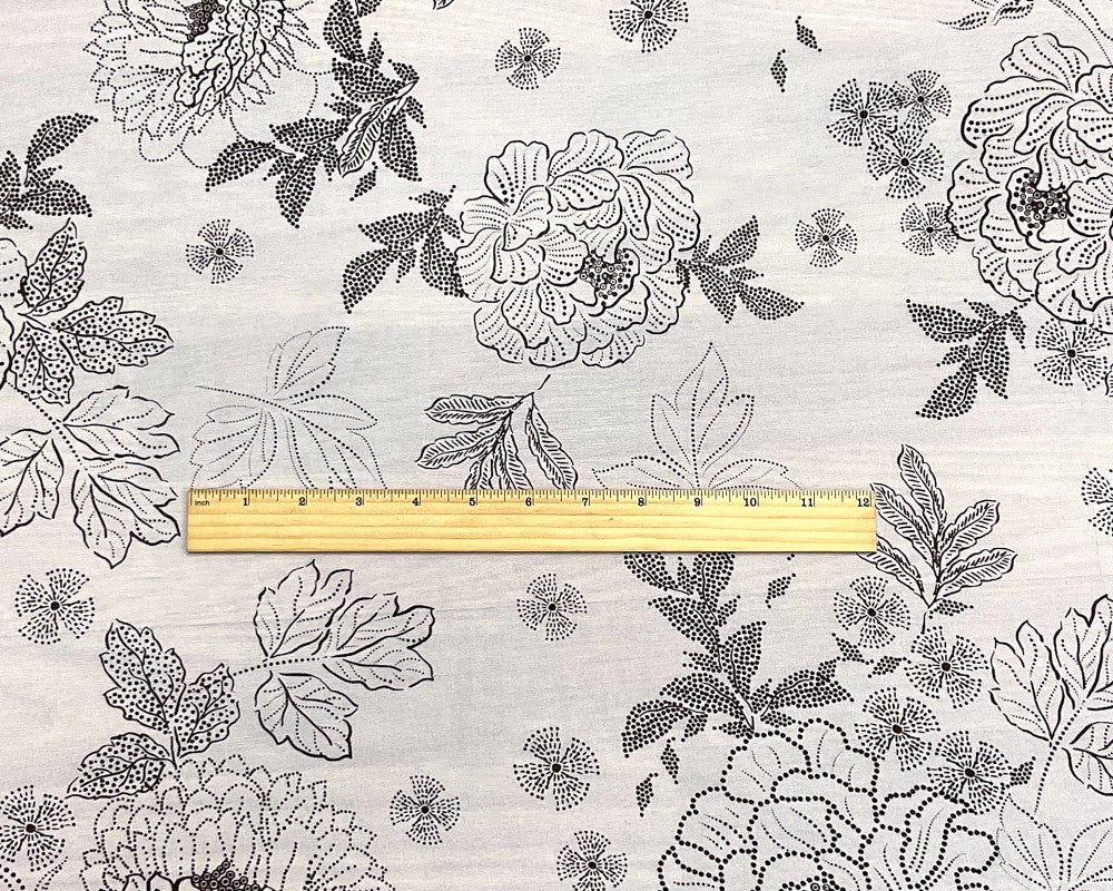 -White-Black Poly Floral Printed Chiffon Woven Fabric