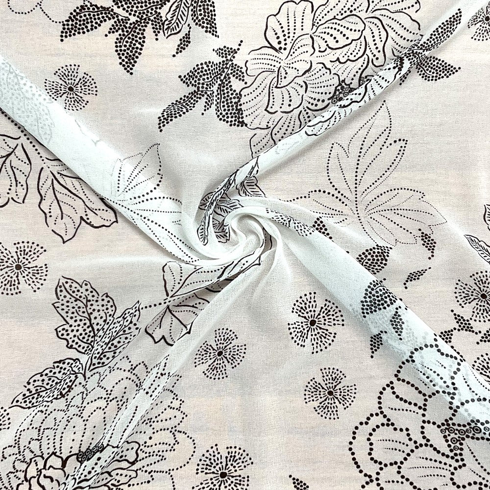 White-Black Poly Floral Printed Chiffon Woven Fabric
