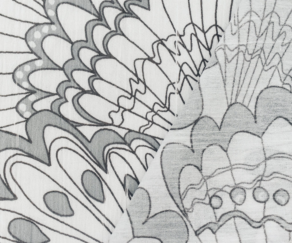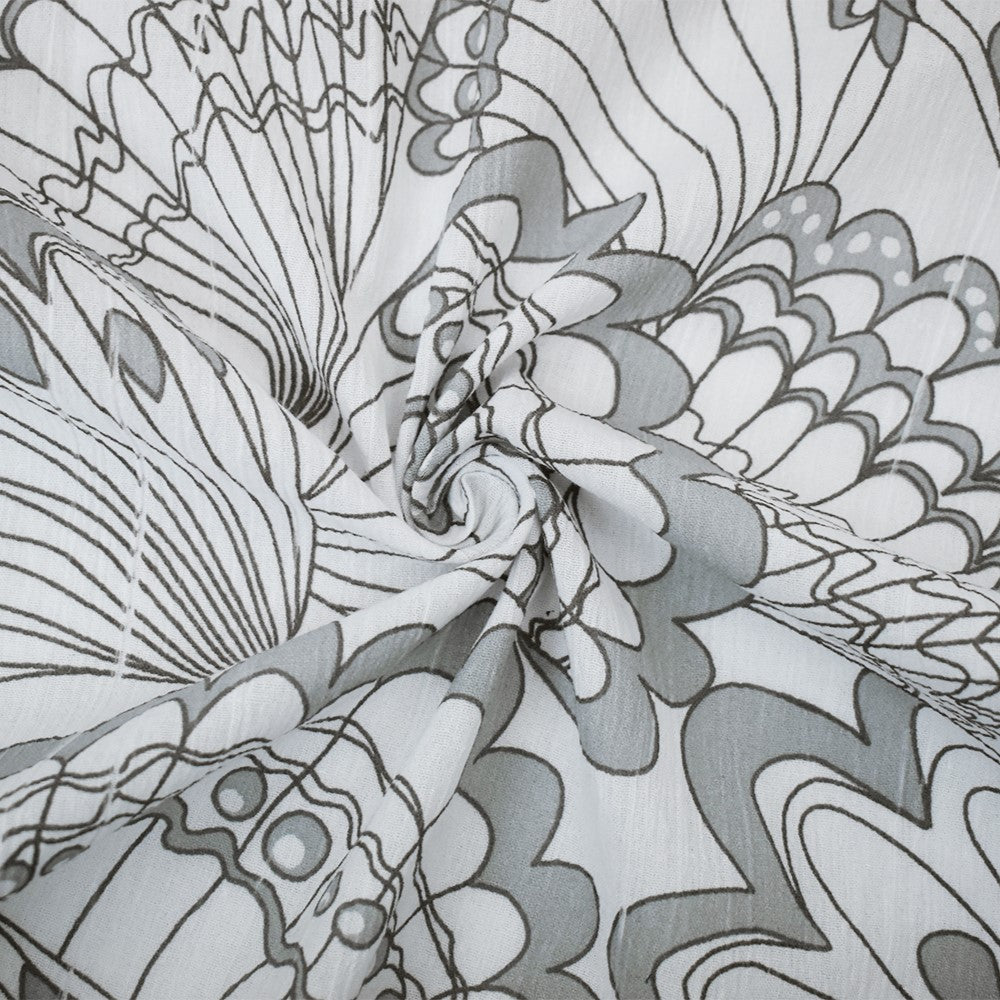 White-Gray Cotton Abstract Feather Printed Crinkled Gauze Woven Fabric