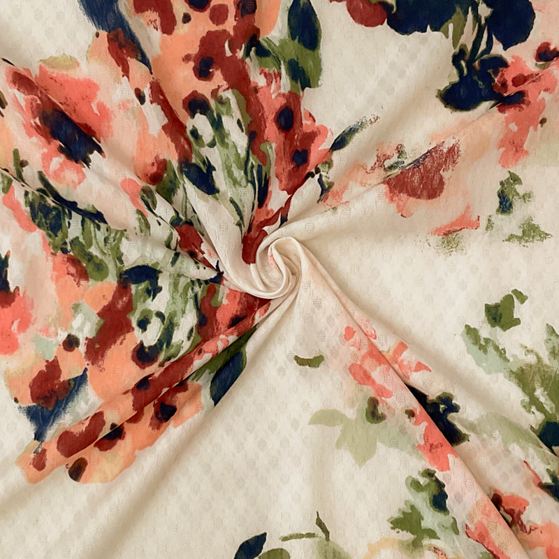 White-Multi Poly Floral Print Ogee Shape Dobby Chiffon Woven Fabric