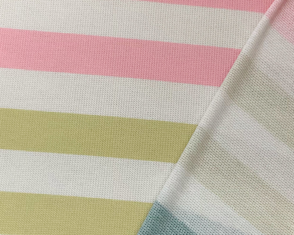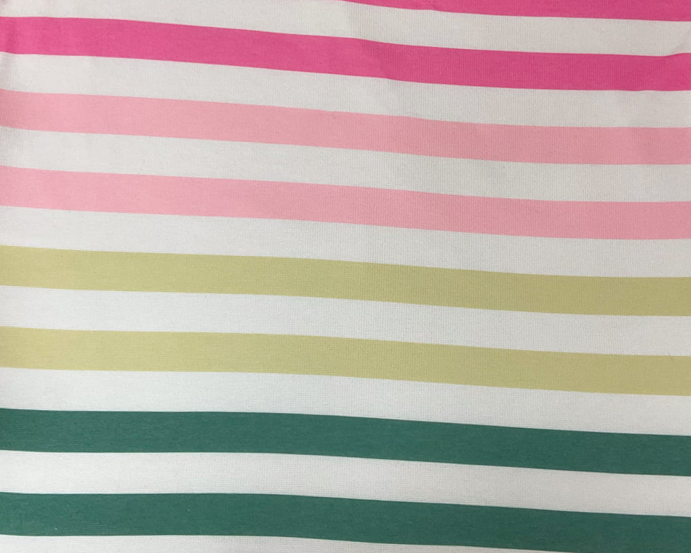 White-Pink-Multi Poly Rayon Stripe Printed Jersey Knit Fabric