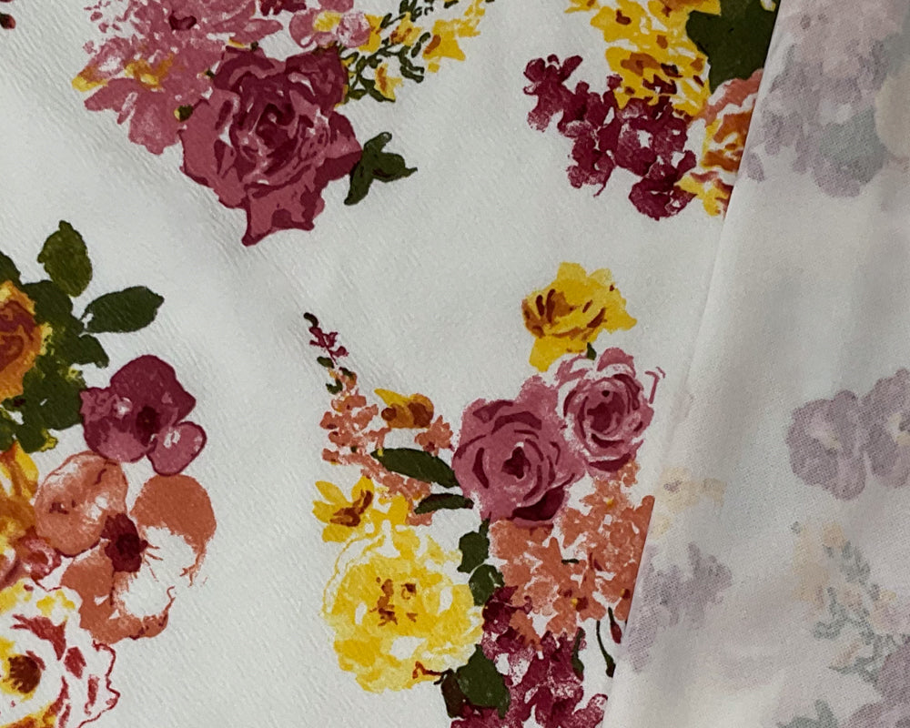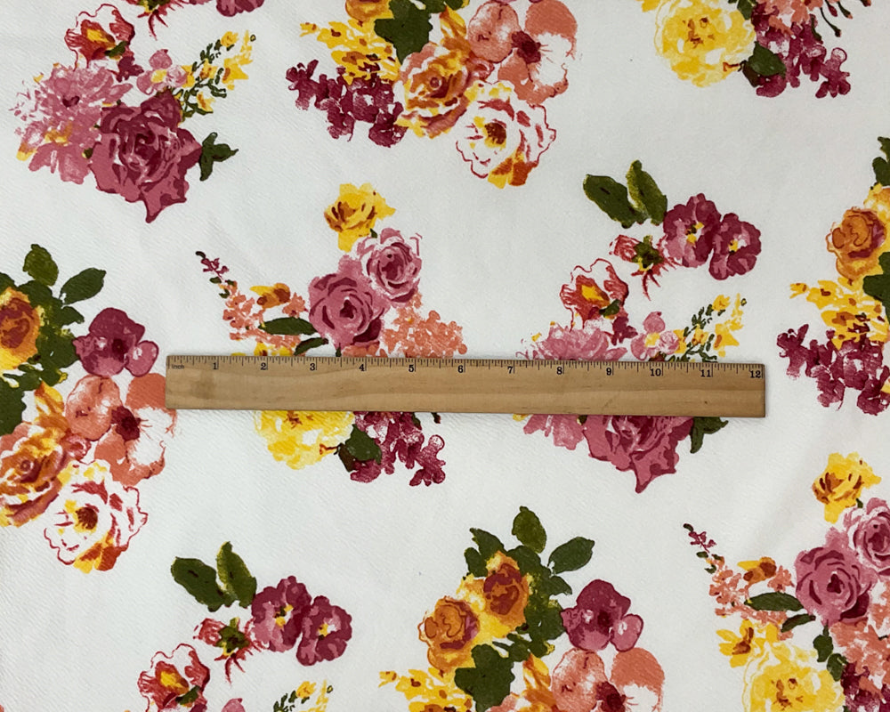 White-Red-Multi Poly Stretch Floral Printed Double Knit Fabric