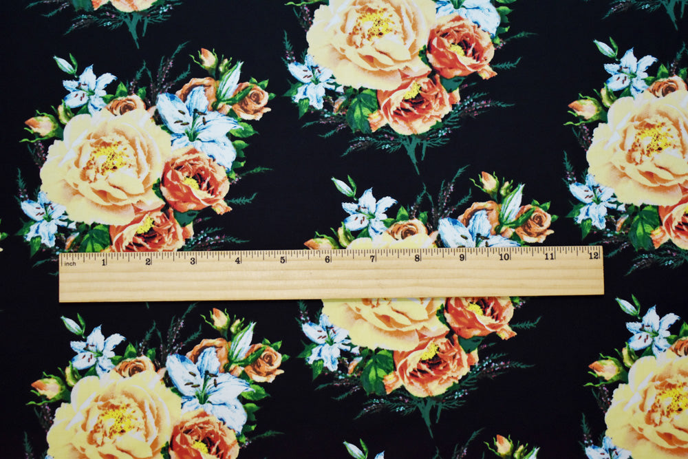 Black-Yellow-Multi Cotton Floral Printed Stretch Spandex Woven Fabric