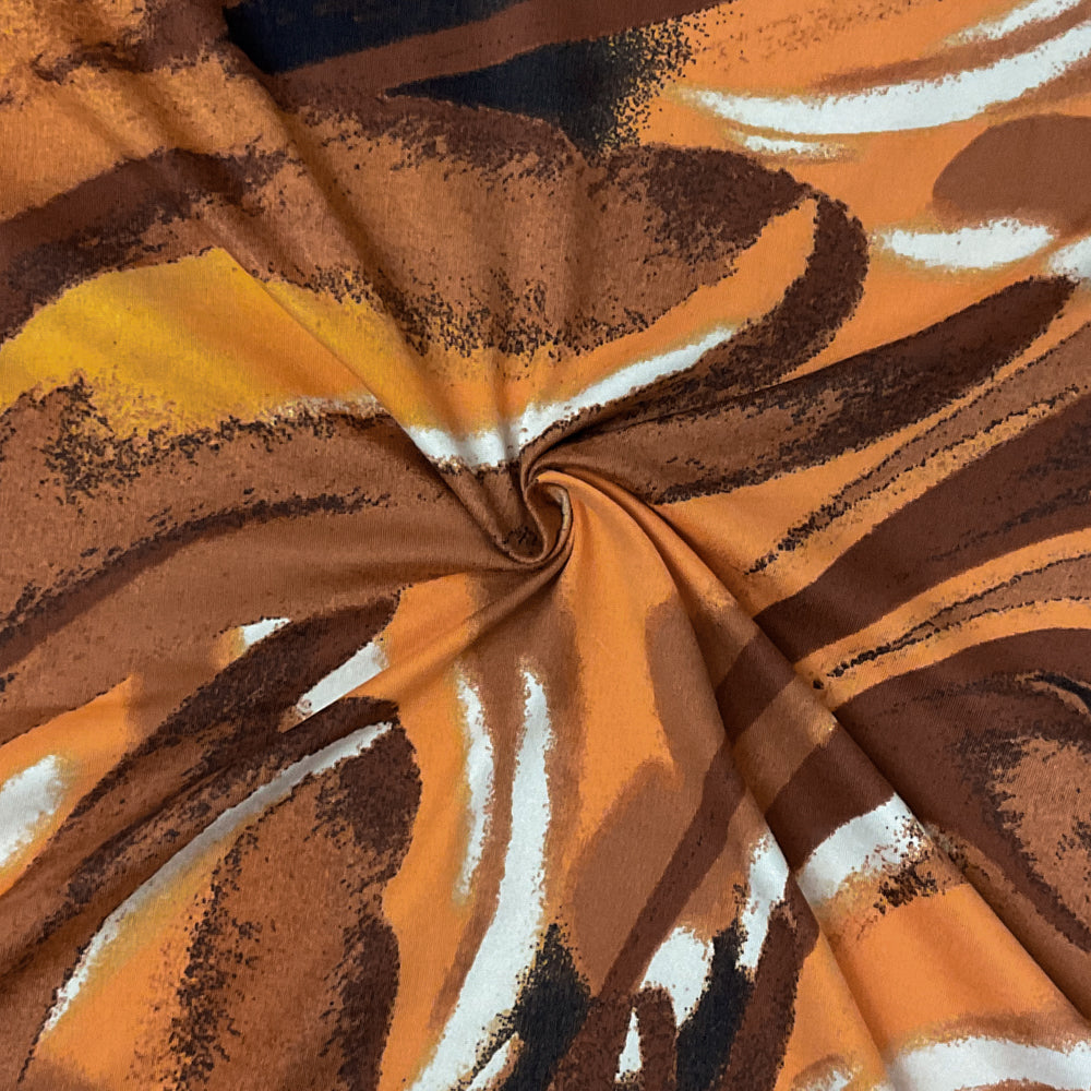 Brown-Multi Poly Spandex Stretch Abstract Print DB Jersey Knit Fabric