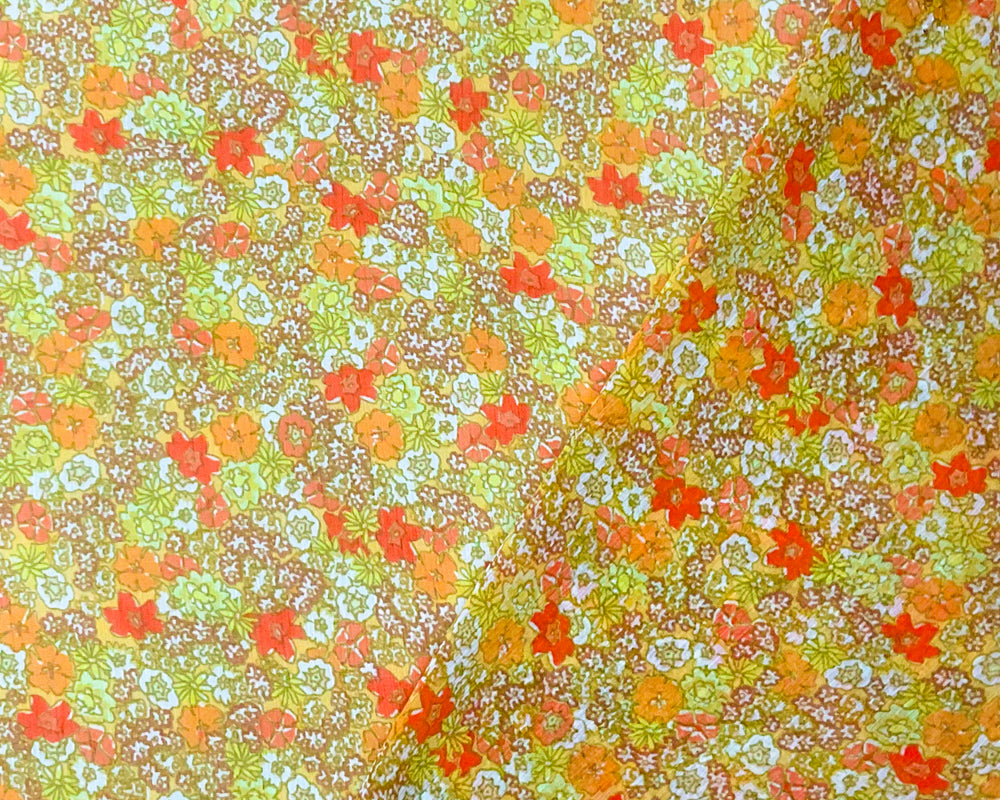 Yellow-Multi Poly Floral Print Crinkle Yoryu Chiffon Woven Fabric