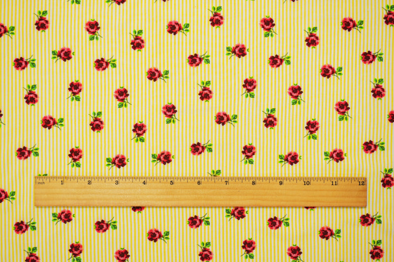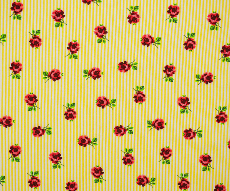 Yellow-White-Multi Rayon Floral Stripe Printed Challis Woven Fabric