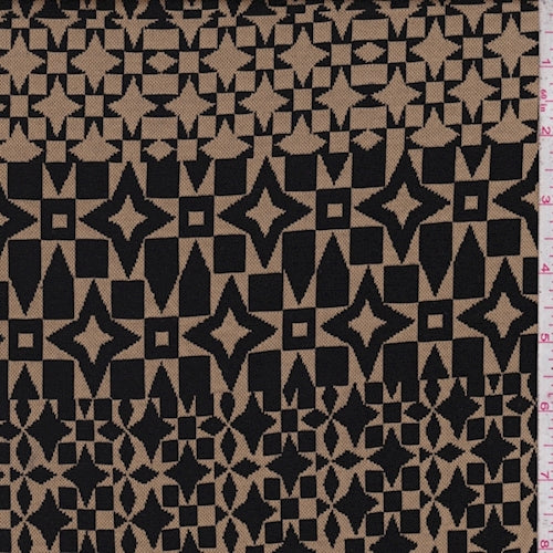 1 1/2 YD PC-Sandy Tan/Black Geo Jacquard Double Knit Fabric