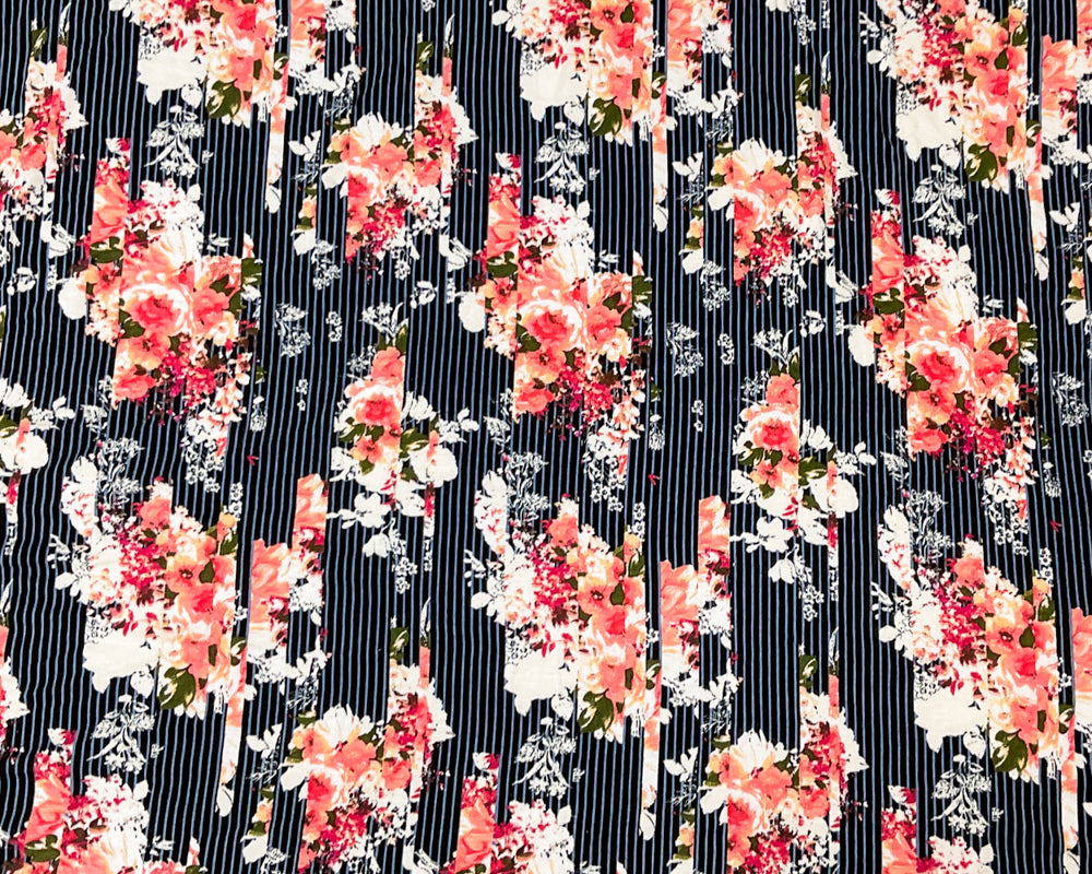 Black-Multi Rayon Spandex Floral Stripe Print Jersey Knit Fabric