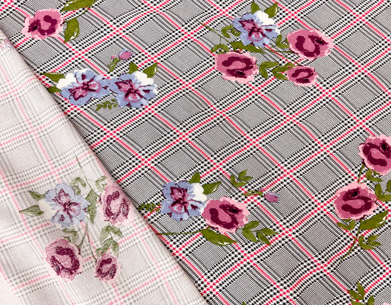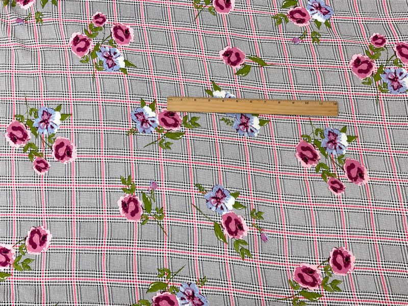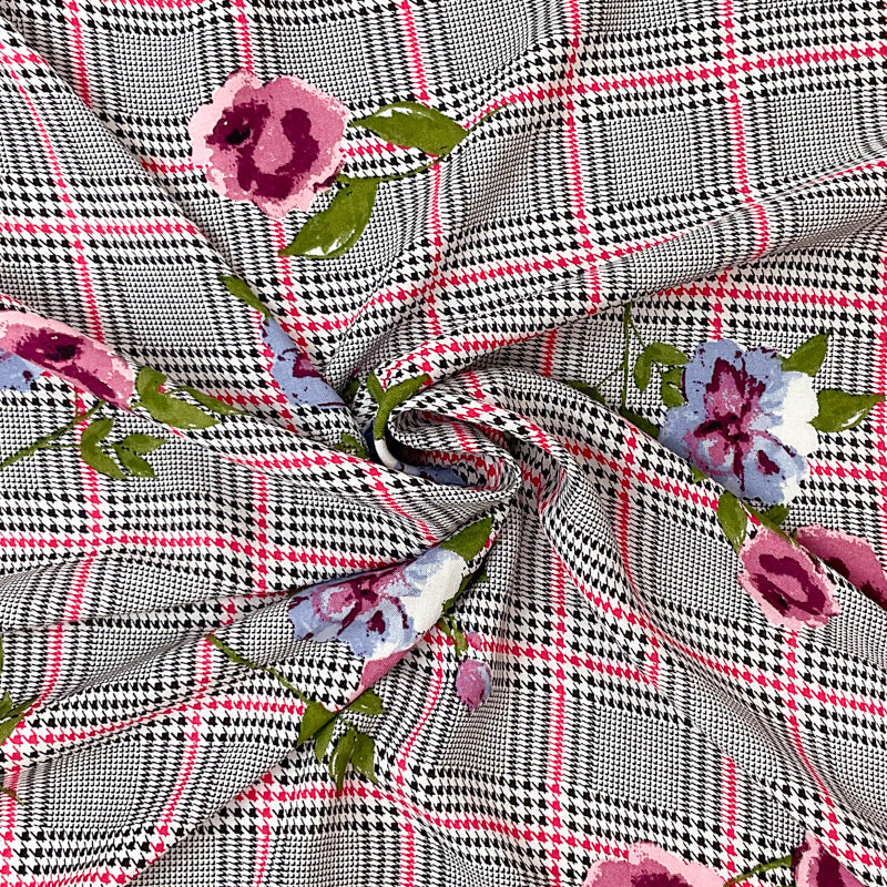 Black-Purple-Multi Rayon Floral Printed Challis Woven Fabric