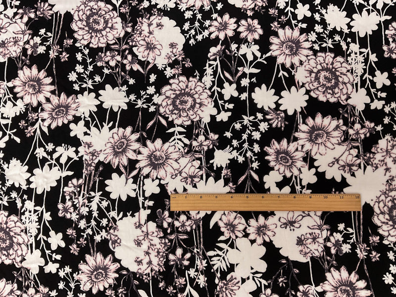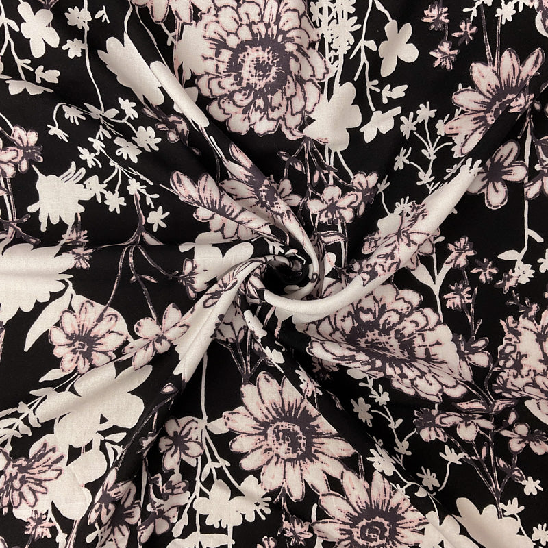 Black-White-Multi Rayon Floral Printed Challis Woven Fabric