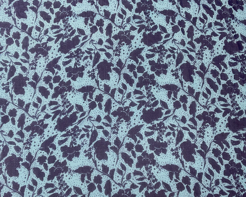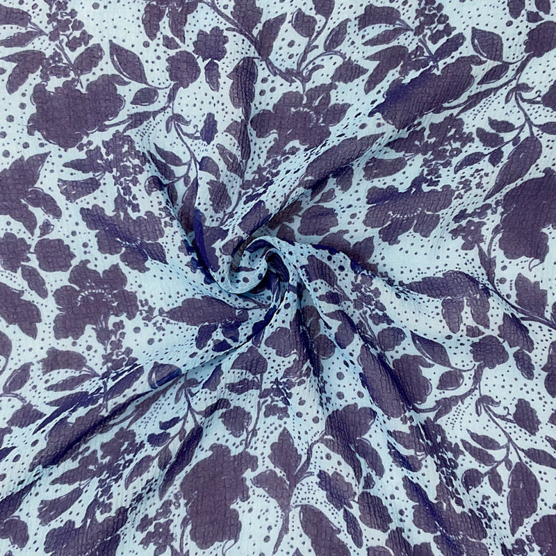 -Blue Poly Floral Printed Yoryu Chiffon Woven Fabric