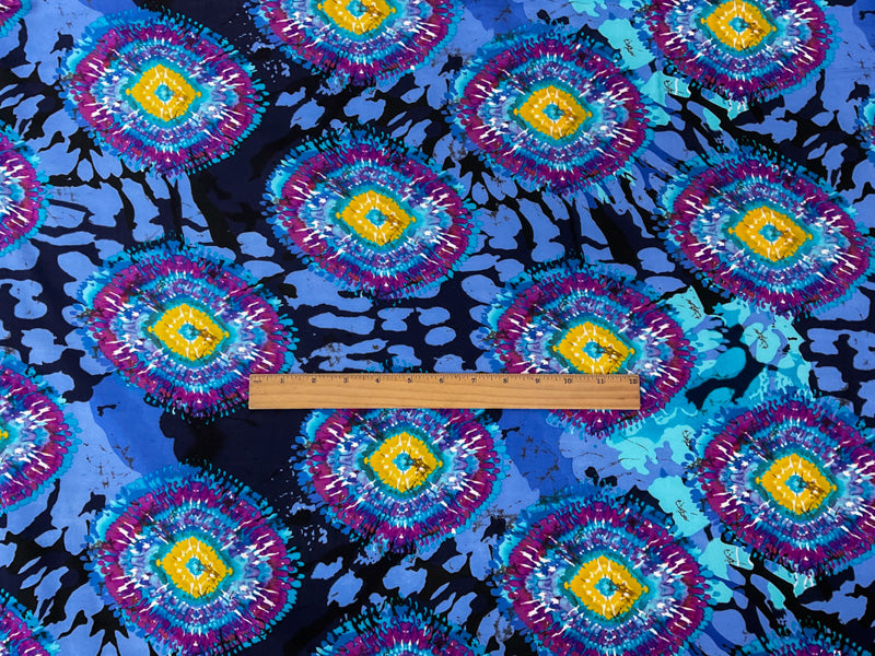 Blue-Purple-Multi Rayon Abstract Tie Dye Printed Challis Woven Fabric