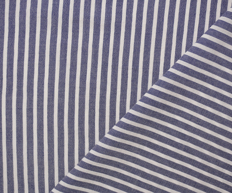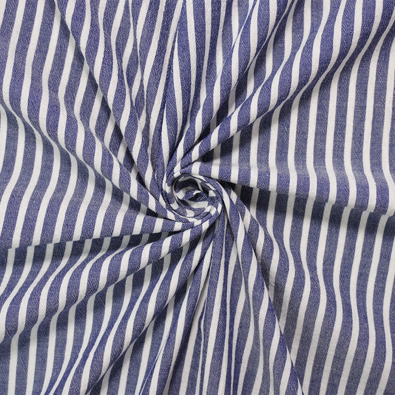 Blue-White Rayon Stripe Yarn Dyed Textured Woven Fabric