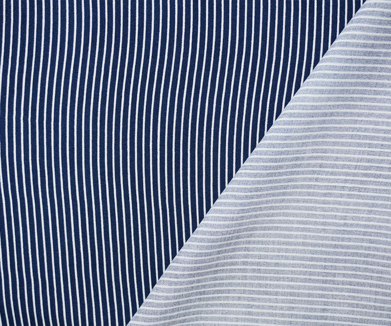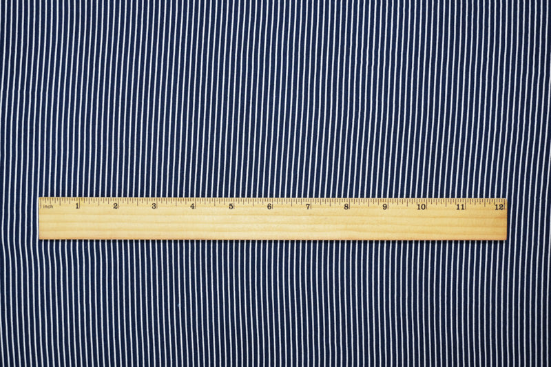 Deep Navy-White Rayon Stripe Challis Woven Fabric
