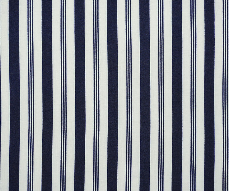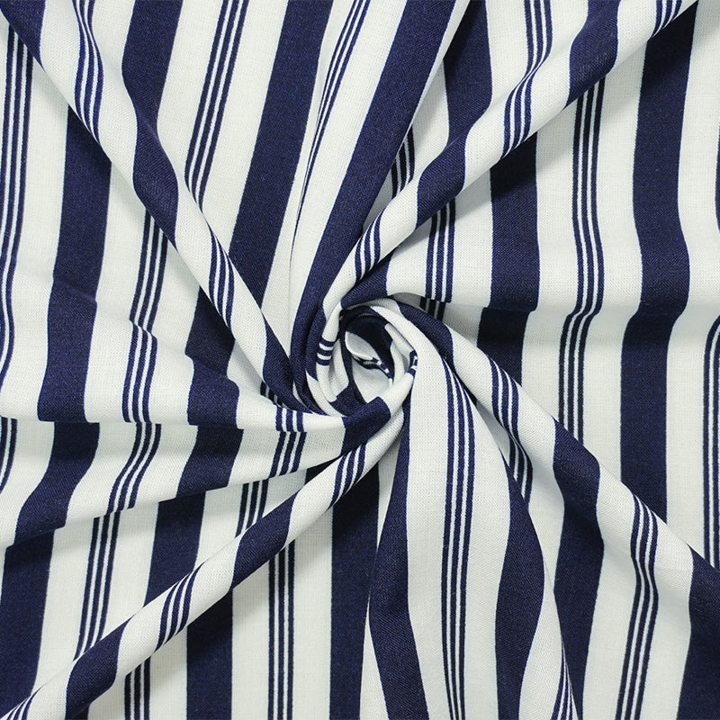 Deep Navy-White Rayon Stripe Printed Challis Woven Fabric