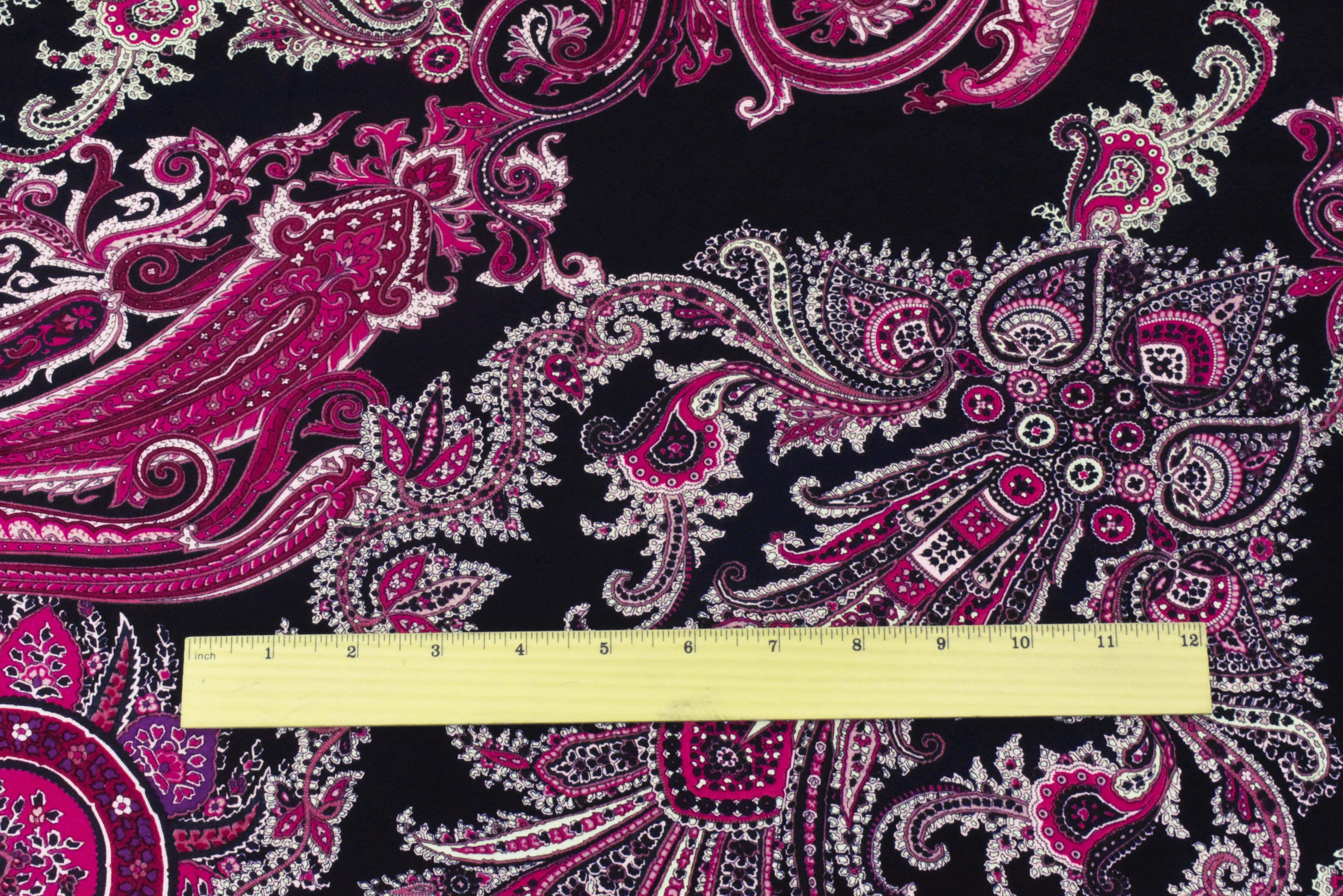 Fuchsia-Pink-Multi Famous Designer Viscose Paisley Printed Crepe Faille Fabric
