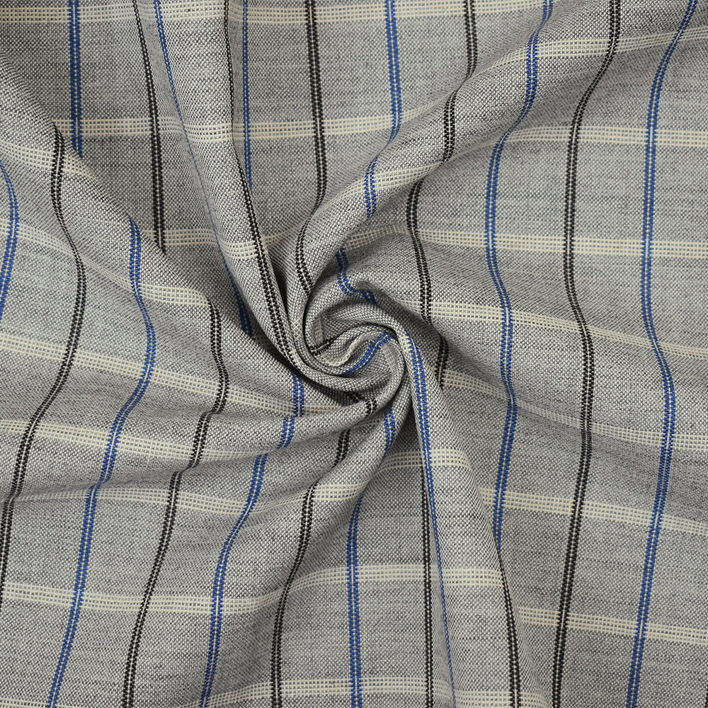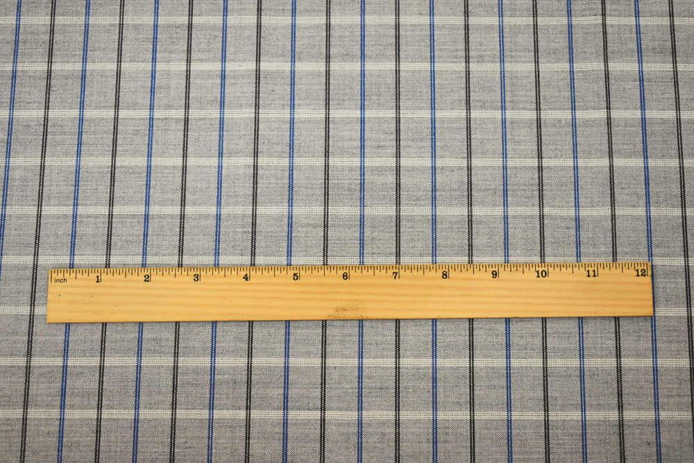 Gray-Blue-Multi Poly Wool Check Plaid Woven Shirting Fabric