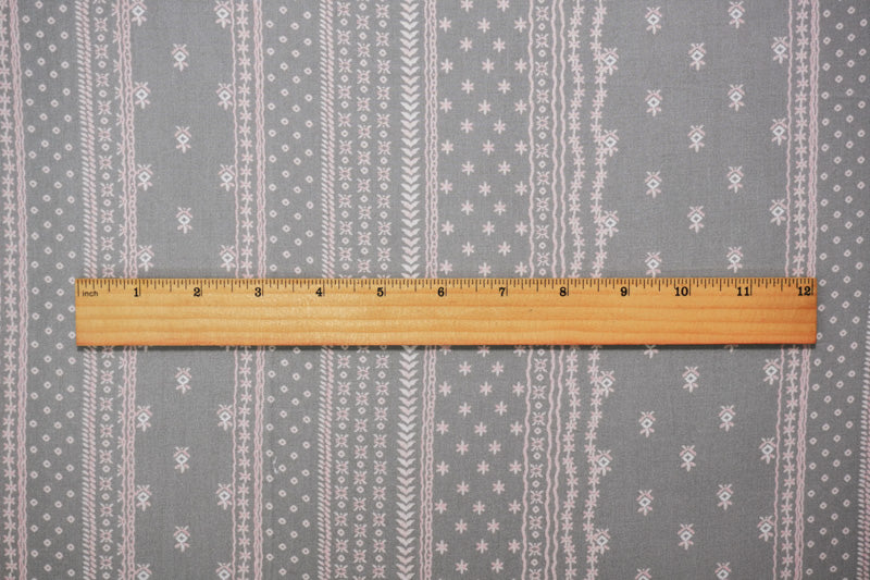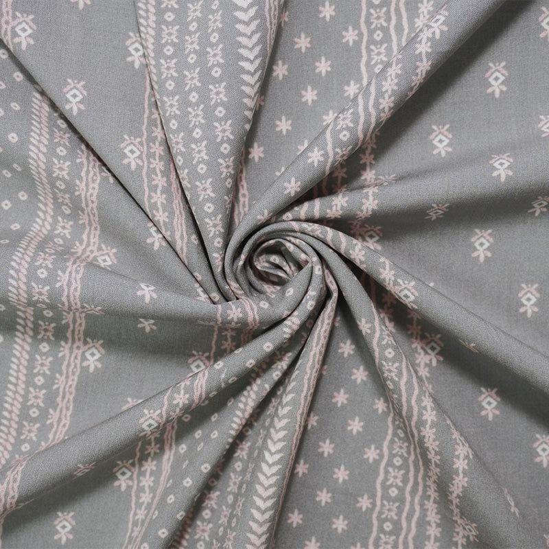 Gray-Pink-White Rayon Nordic Stripe Printed Challis Woven Fabric